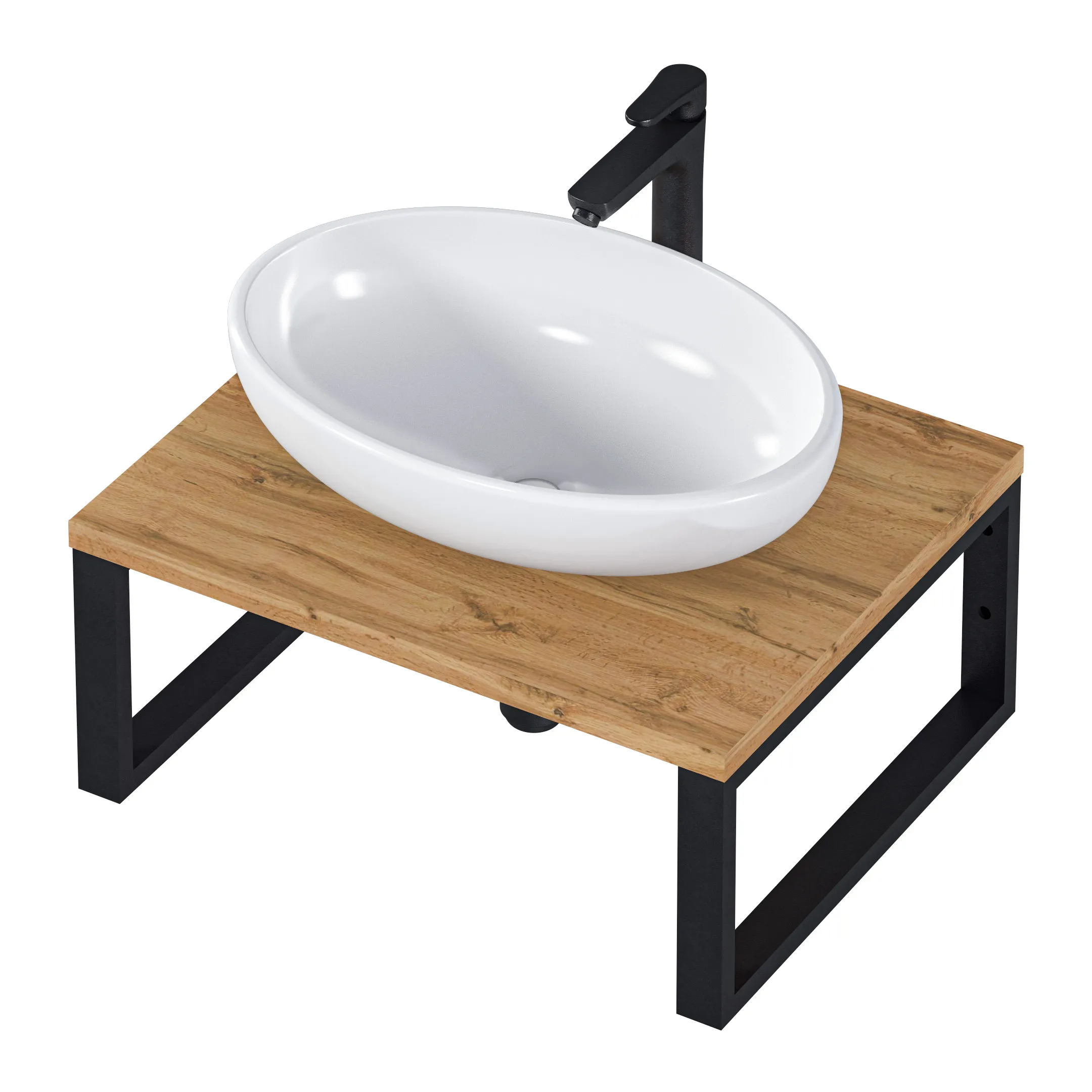 Деревянная столешница под раковину в ванную в стиле лофт - нестандартное компактное решение для современного интерьера. Сочетание дерева и металла вносит эффект новизны в привычный дизайн ванной комнаты.Характеристики: