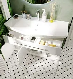 Тумба для современной или эклектичной ванной комнаты с тремя вместительными выдвигающимися ящиками, дополненными оригинальными ручками. Она создана специально для поклонников актуальных решений в дизайне мебели для ванной комнаты, поэтому отличается лаконичным дизайном, отсутствием лишних деталей и бескомпромиссной функциональностью. Ее дополнительное преимущество состоит в благородном сером цвете корпуса. Разделение ящиков на функциональные отсеки делает ежедневное использование тумбы еще более удобным и комфортным.Характеристики: