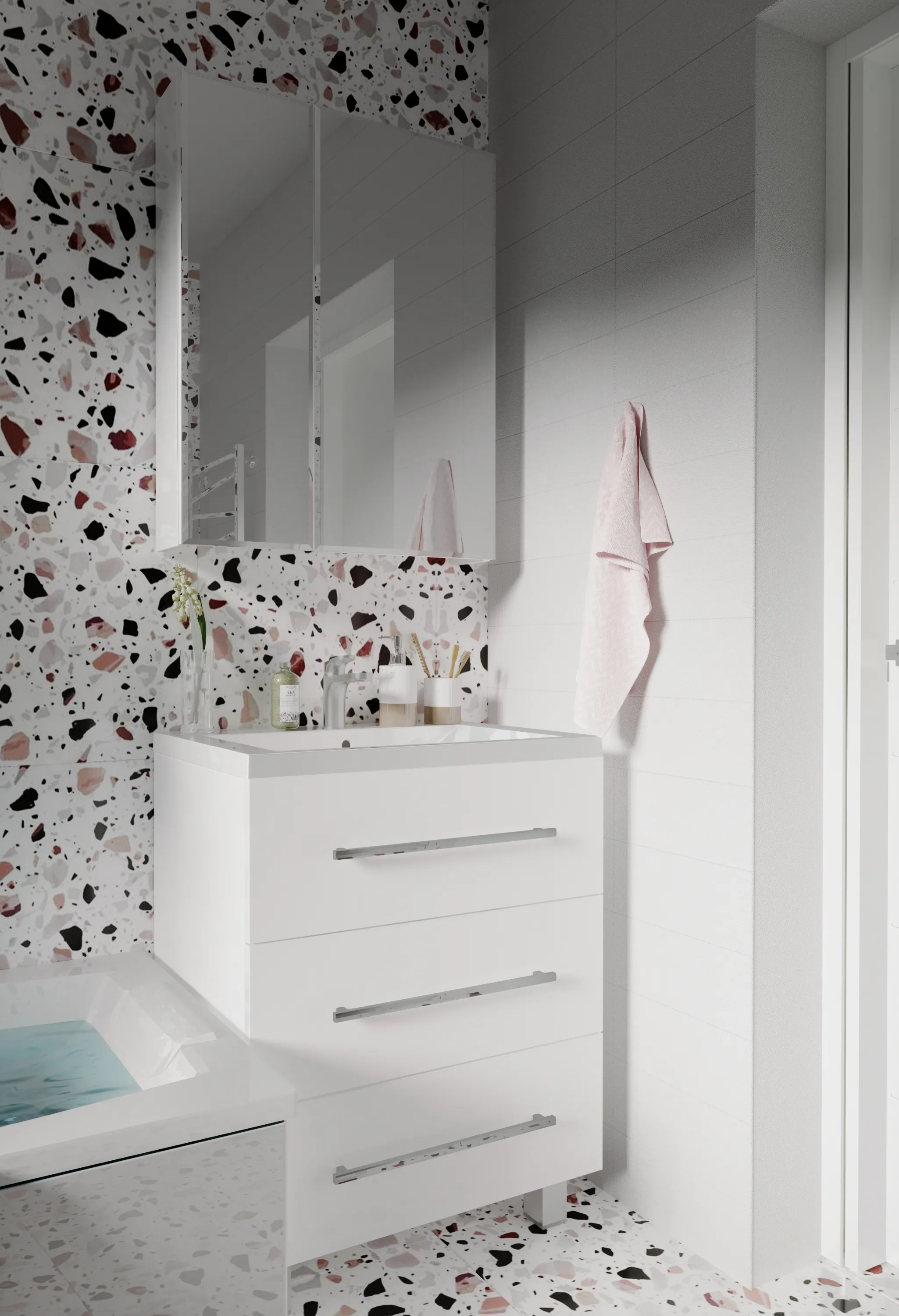 Тумба с раковиной, которую по праву можно назвать современной классикой - лаконичный и одновременно стильный дизайн сочетаются в ней с повышенной функциональностью, которая крайне важна в современных пространствах. Три выдвижных ящика позволяют с комфортом организовать процесс хранения любых вещей и предметов - от бытовой химии и косметики до банных аксессуаров и личных вещей. Ручки ящиков могут использоваться как держатели для полотенец и халатов. А проверенные временем, качественные материалы исполнения делают представленную модель по-настоящему практичной и долговечной.Характеристики: