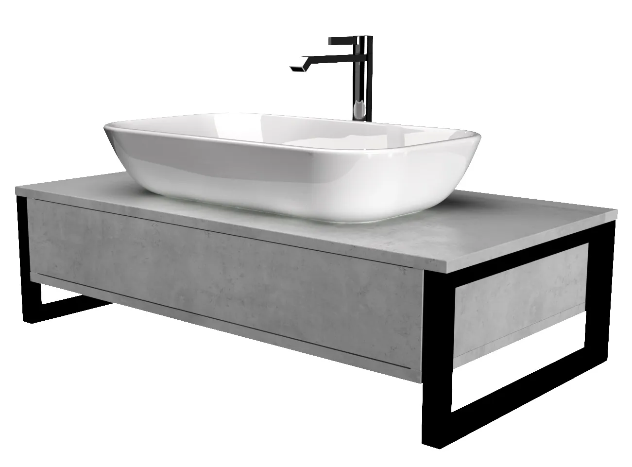 Тумба в стиле лофт, покупка которой решает сразу несколько важных вопросов в функциональном оформлении ванной комнаты. Ее дизайн построен на гармоничном сочетании дерева и металла: корпус с естественной фактурой дерева дополнен металлическими кронштейнами, которые также могут использоваться в качестве рейлов для размещения полотенец и халатов. Выдвижной ящик без ручки, открывающийся одним простым нажатием, разделен на несколько отсеков для удобства организации процесса хранения. Также тумба предполагает свободное пространство для размещения косметики и предметов декора.Характеристики: