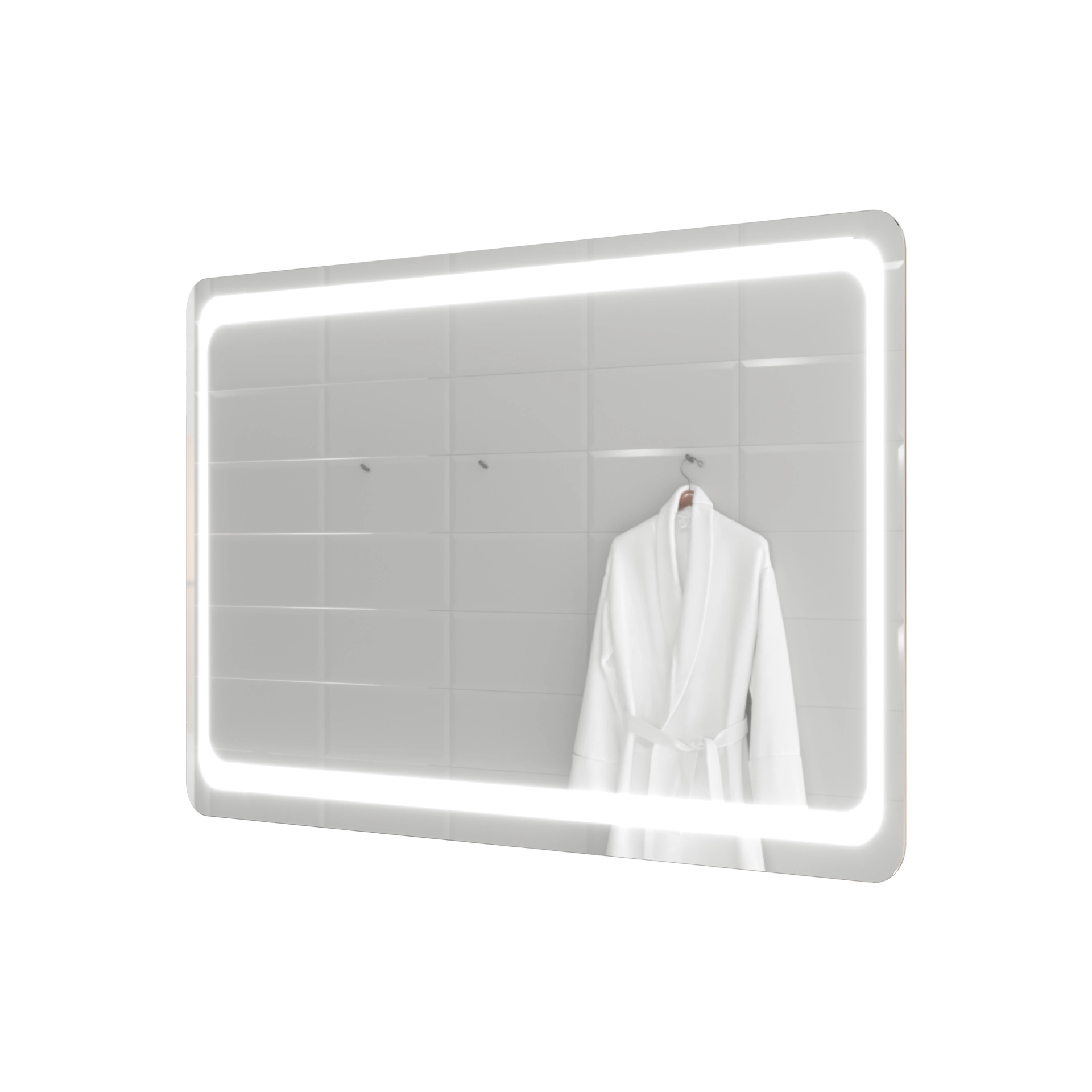 Зеркало, выполненное на стыке классических и современных решений в дизайне аксессуаров. Оно имеет традиционную форму прямоугольника с мягкими краями, которая подчеркивается дублирующим ее рисунком, выполненным методом художественного матирования. Мягкий свет, излучаемый по всему периметру зеркала, не только делает более удобным его ежедневное использование, но и позволяет создавать в ванной комнате особенно уютную атмосферу. Для изготовления зеркала используется французское или бельгийское зеркальное полотно на основе серебряной амальгамы, что значительно увеличивает срок службы модели.Характеристики: