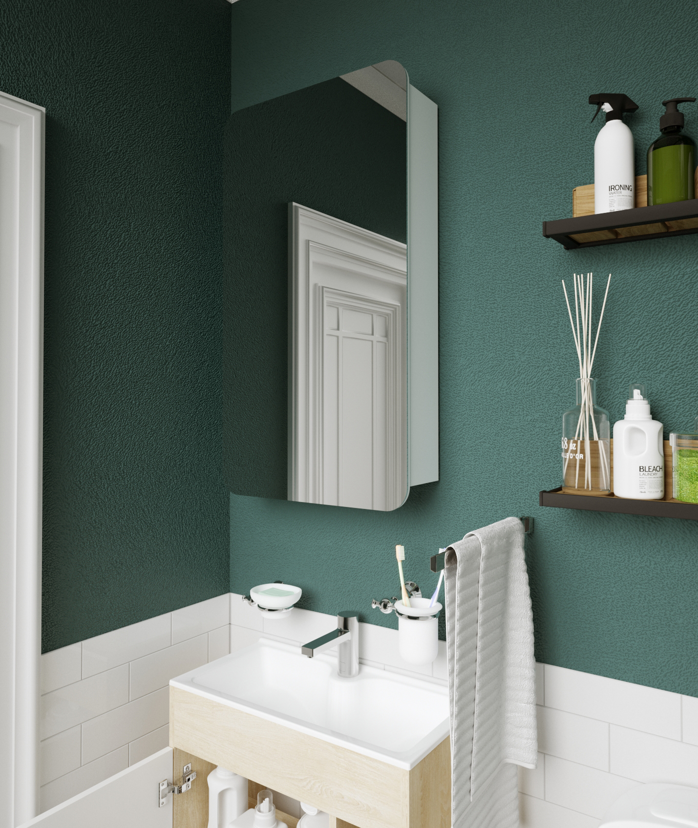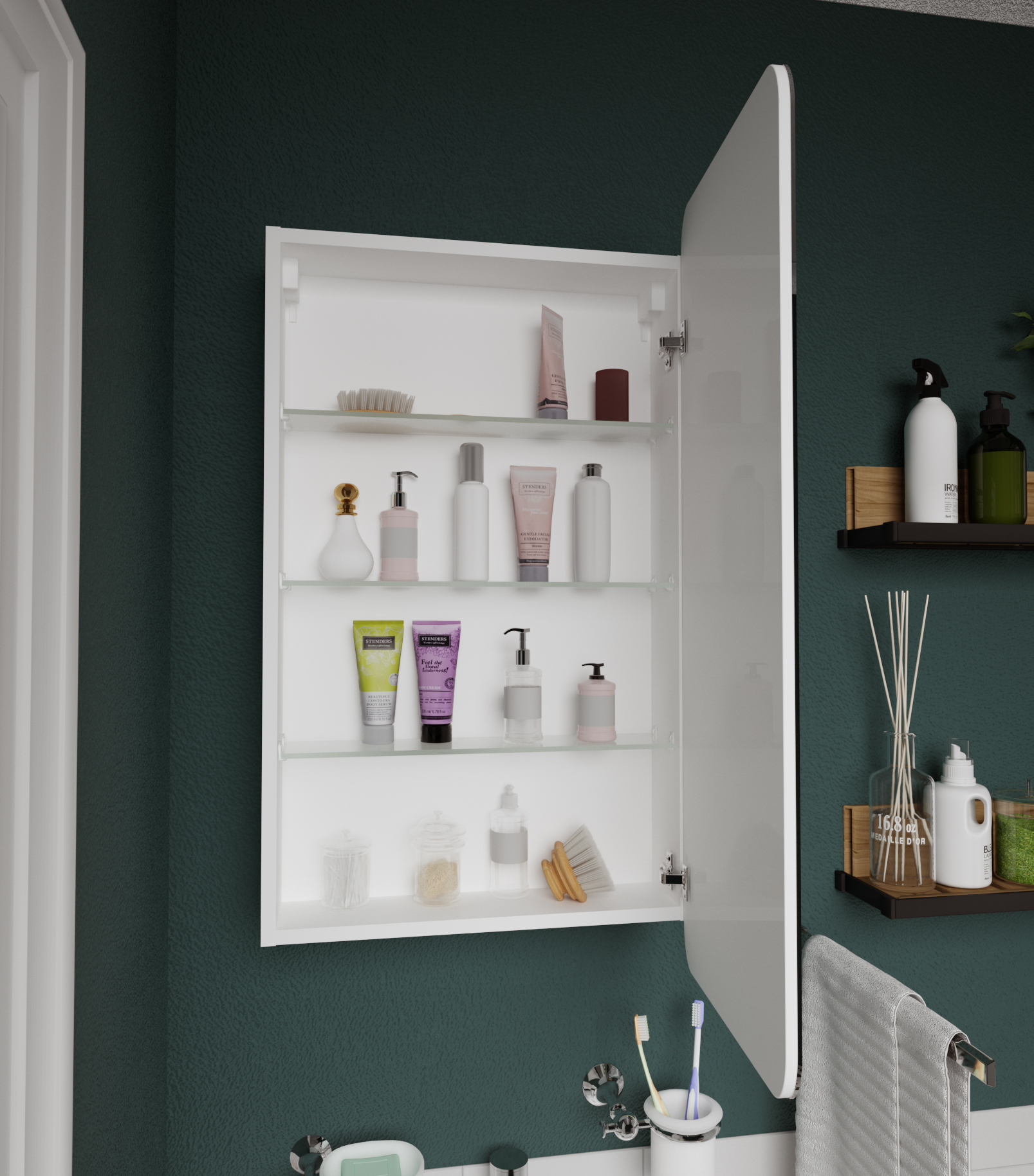Функциональный зеркальный шкаф. Используется зеркальное полотно производства Бельгии и Франции. Основа полотна из серебряной амальгамы, что значительно увеличивает срок эксплуатации зеркал.