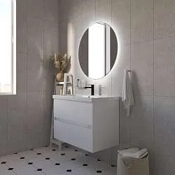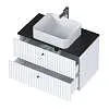 Тумба Desire – изящное решение для интерьера ванной комнаты. Рельефный фасад создает ритмичную игру света и теней. Черные ручки-кнопки контрастируют с белым фасадом и подчеркивают её современный дизайн.Характеристики: