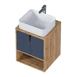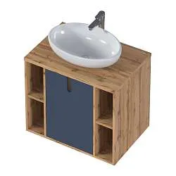 Стильные ручки и накладная раковина дополняют тумбу и подчеркивают характер модели.