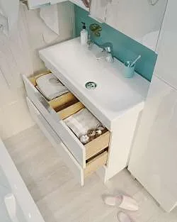 Тумба с двумя просторными выдвижными ящиками обеспечивают удобное хранение различных предметов. Desire станет отличным дополнением к ванной комнате, сочетая в себе функциональность и элегантный дизайн.