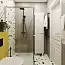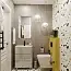Интерьер компактной ванной комнаты с оригинальными функциональными деталями, которые приведут в восторг членов семьи и гостей. Уникальная разработка от 1Марка тумба Bumble c раздвижной раковиной позволит сэкономить пространство и при необходимости преобразовать узкую раковину в широкую. Высокий шкаф Gaula глубиной всего 15см расположенный со стороны двери добавляет дополнительную зону хранения бытовой химии и полотенец по вертикальной плоскости комнаты, не съедая драгоценное пространство. Мягкий нейтральный свет зеркала с подcветкой Tera и акриловых светильников Orbe привнесет уютное и достаточно яркое освещение, позволяющее удобно бриться или наносить косметику. Душевой уголок с низким поддоном Quadro и прозрачными стеклянными ограждениями сделает зону водных процедур невесомой и практически незаметной в общем пространстве.