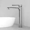 Стильный хромированный смеситель для настольного умывальника Slide отлично дополнит настольный умывальник-чашу. Отверстие-петля на ручке выполняет декоративную и при этом практичную роль — ее легко захватить даже намыленной рукой и отрегулировать напор или температуру. Силиконовый аэратор эстетично скрыт в корпусе излива. В комплекте гибкая подводка и комплект крепежа.Характеристики: