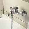 Смеситель для ванны из коллекции Bild отличается четкими геометрическими формами и уникальным дизайном ручки-петли с тонкой изящной рамкой — ее толщина составляет всего 2 мм. Благодаря улучшенной эргономике ручка смесителя удобно ложится в руку, делая управление невероятно комфортным. Без душевых аксессуаров в комплекте.Характеристики: