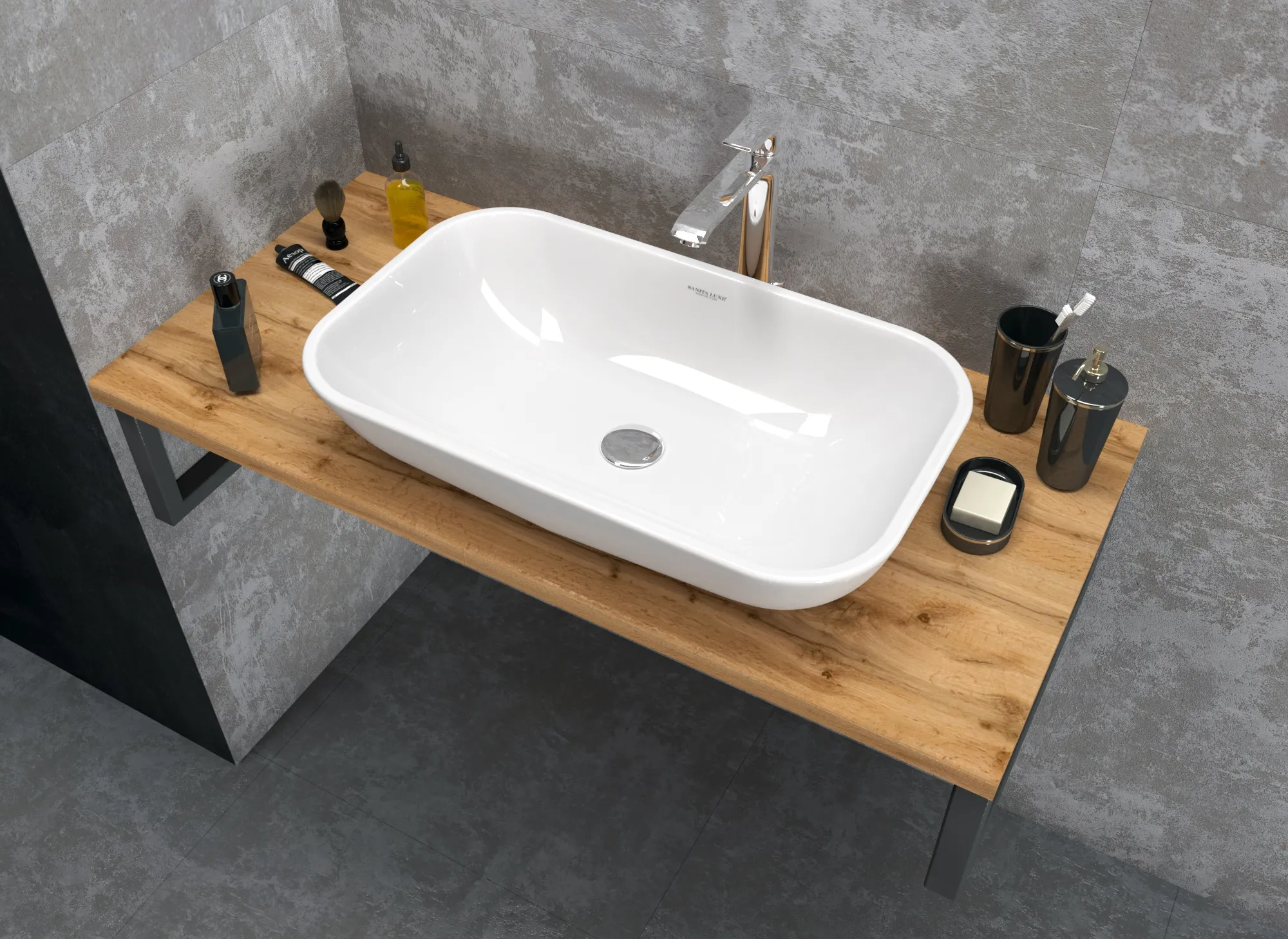 Функциональная и стильная столешница в востребованной и актуальной стилистике LOFT. Минималистичная и одновременно эффектная, она изготовлена в универсальной прямоугольной форме и дополнена такими практичными деталями, как металлические кронштейны, которые можно использовать в качестве рейлингов. Столешница выполнена из проверенных материалов, прекрасно защищена от воздействия влаги, не склонна к появлению сколов, царапин, трещин и других дефектов. Она подойдет для ванных комнат любых размеров и практически любой цветовой гаммы - от сдержанной до яркой и насыщенной.Характеристики: