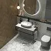 Столешница из керамогранита - это стильное, функциональное и долговечное решение, которое подойдет для ванных комнат, исполненных в самых разнообразных отделочных материалах. Такая универсальность, тем не менее, предполагает высокую декоративную и эстетическую ценность столешницы - она делает обстановку в ванной комнате по-настоящему стильной и соответствующей актуальным тенденциям в дизайне. Металлическое подстолье создает эффектный цветовой контраст, а также может использоваться в качестве практичных рейлингов для удобного размещения полотенец и банных халатов.Характеристики: