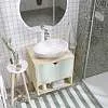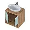 • В тумбе удобно организовать хранение. В открытой полках можно разместить органайзеры, предметы ежедневного пользования и декоративные элементы. А в закрытой – бытовую химию или средства личной гигиены.
