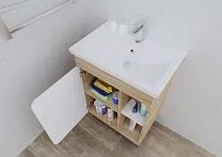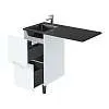 Тумба под раковину* Maid – элегантное решение "2-в-1", которое объединяет функциональность и стиль, позволяя гармонично разместить раковину и стиральную машину в ванной комнате. Белый цвет легко сочетается с другими цветами и стилями интерьера, предоставляя свободу в оформлении ванной комнаты. Акцентные опоры черного цвета гармонично дополнят ваш выбор: строгая графитовая или нежная белая раковина – для создания неповторимого стиля ванной комнаты.Характеристики: