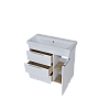 Тумба для современной или эклектичной ванной комнаты с тремя вместительными выдвигающимися ящиками, дополненными оригинальными ручками. Она создана специально для поклонников актуальных решений в дизайне мебели для ванной комнаты, поэтому отличается лаконичным дизайном, отсутствием лишних деталей и бескомпромиссной функциональностью. Ее дополнительное преимущество состоит в благородном сером цвете корпуса. Разделение ящиков на функциональные отсеки делает ежедневное использование тумбы еще более удобным и комфортным.Характеристики: