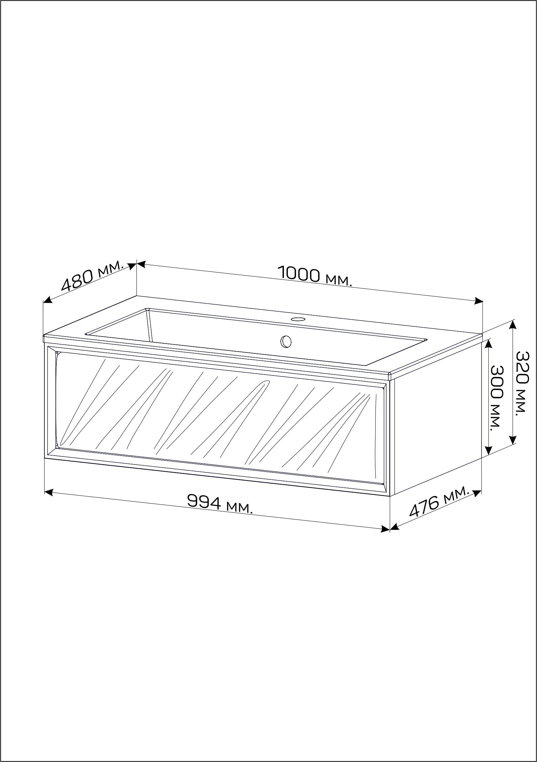 Тумба под раковину ГЛЕЙС/Glace 100П (994х300х476) 1я белый (верх)