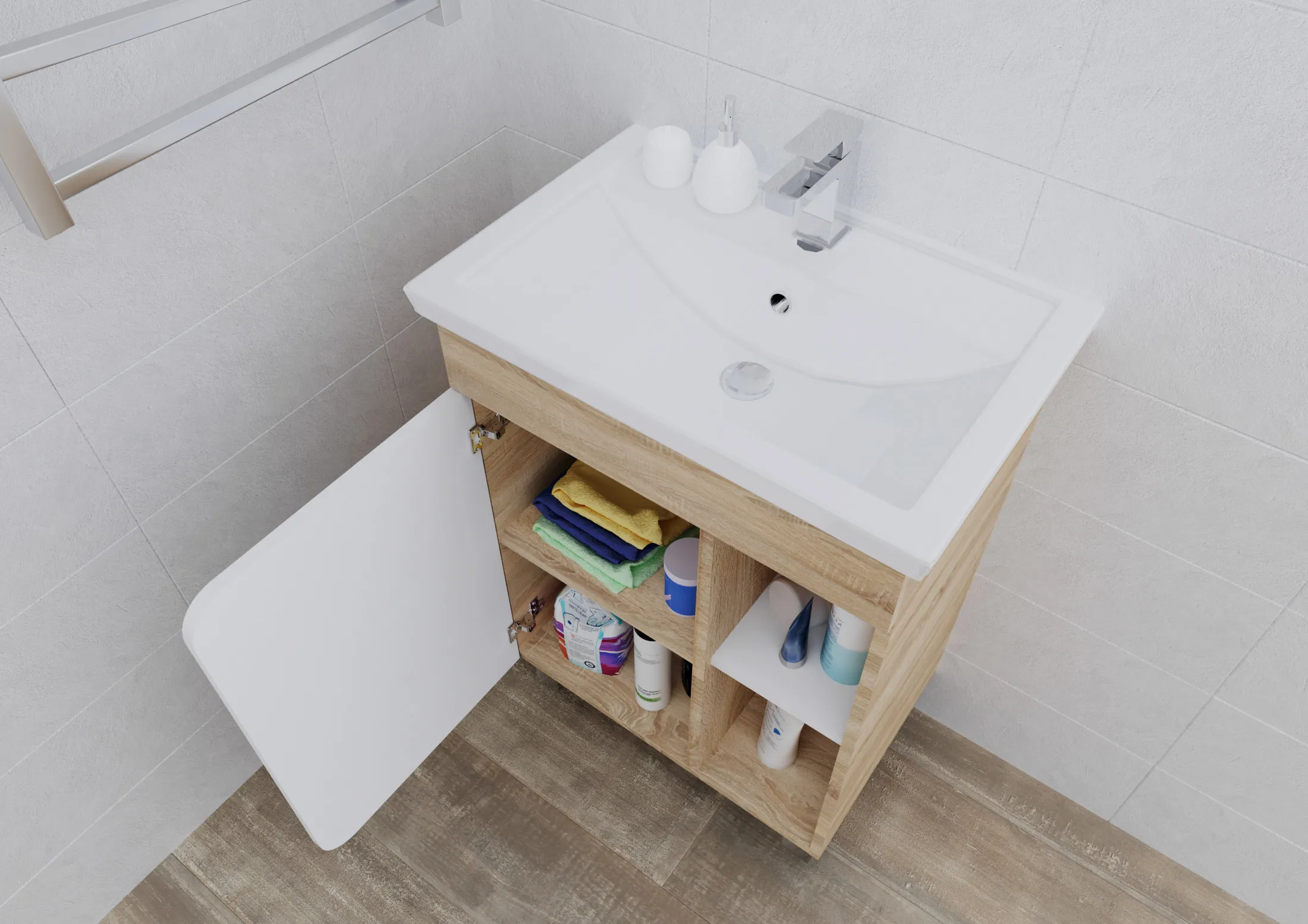 - открытая полочка для хранения: удобно хранить банные принадлежности;