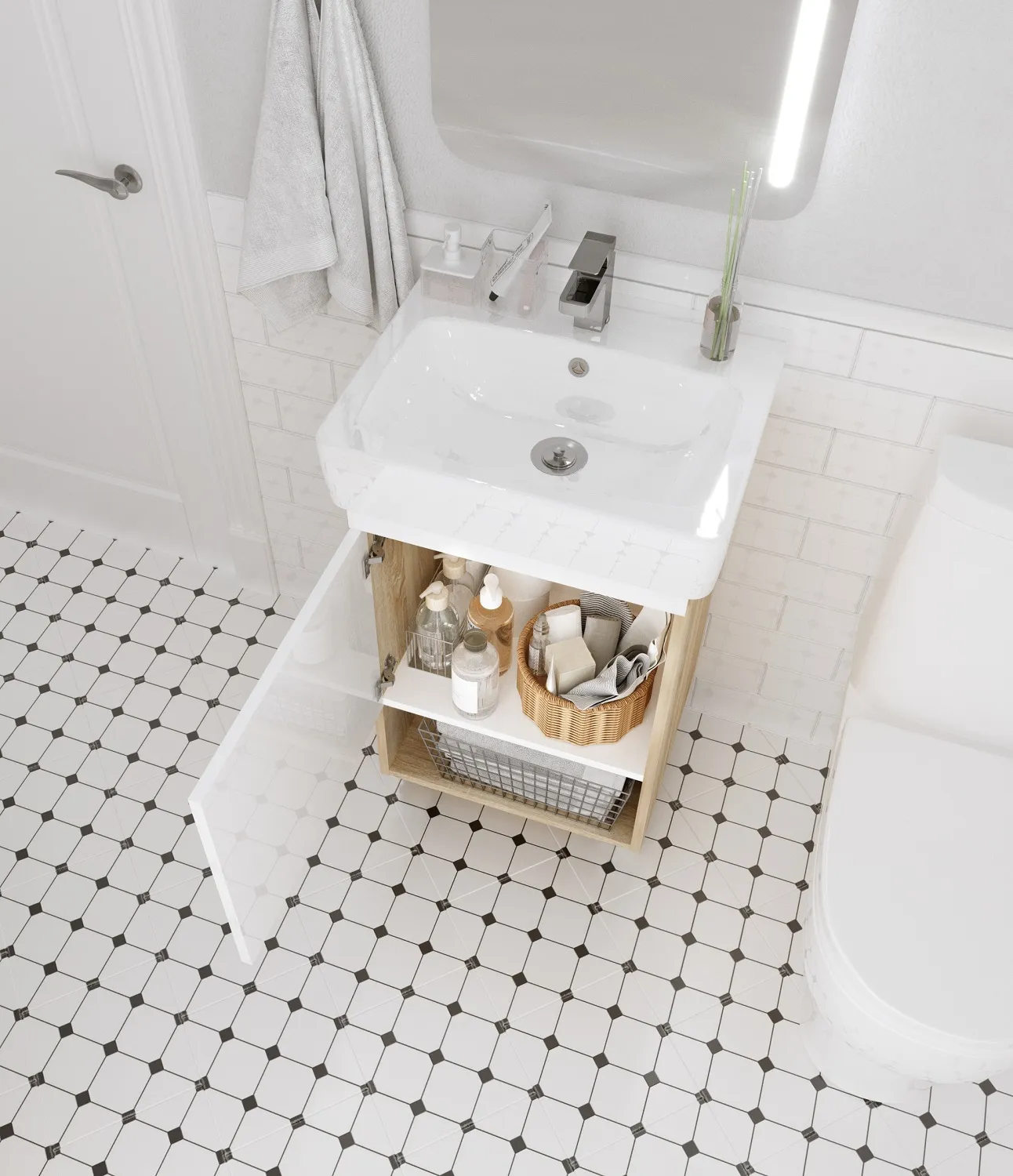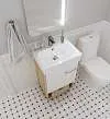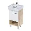 Практичная тумба с многофункциональной конструкцией. Практичная ручка закрывающегося шкафчика может использоваться как держатель для небольших полотенец. Лаконичная конструкция и минималистичный дизайн без лишних деталей делают эту тумбу подходящей для интерьера ванной комнаты в любой стилистике. Она будет одинаково уместна как в классических сдержанных пространствах, так и в современных или даже эклектичных комнатах, оформленных на стыке разных стилей.Характеристики: