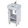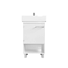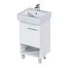 Практичная тумба с многофункциональной конструкцией. Практичная ручка закрывающегося шкафчика может использоваться как держатель для небольших полотенец. Лаконичная конструкция и минималистичный дизайн без лишних деталей делают эту тумбу подходящей для интерьера ванной комнаты в любой стилистике. Она будет одинаково уместна как в классических сдержанных пространствах, так и в современных или даже эклектичных комнатах, оформленных на стыке разных стилей.Характеристики: