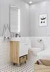 Практичная тумба с многофункциональной конструкцией. Практичная ручка закрывающегося шкафчика может использоваться как держатель для небольших полотенец. Лаконичная конструкция и минималистичный дизайн без лишних деталей делают эту тумбу подходящей для интерьера ванной комнаты в любой стилистике. Она будет одинаково уместна как в классических сдержанных пространствах, так и в современных или даже эклектичных комнатах, оформленных на стыке разных стилей.Характеристики: