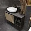 Изготавливаемая из ЛДСП в эмале и керамогранитной столешницы, тумба Rail обладает отличными эксплуатационными характеристиками. Материал пропитан водоотталкивающим средством, что гарантирует защиту от влаги и увеличивает срок службы мебели.