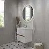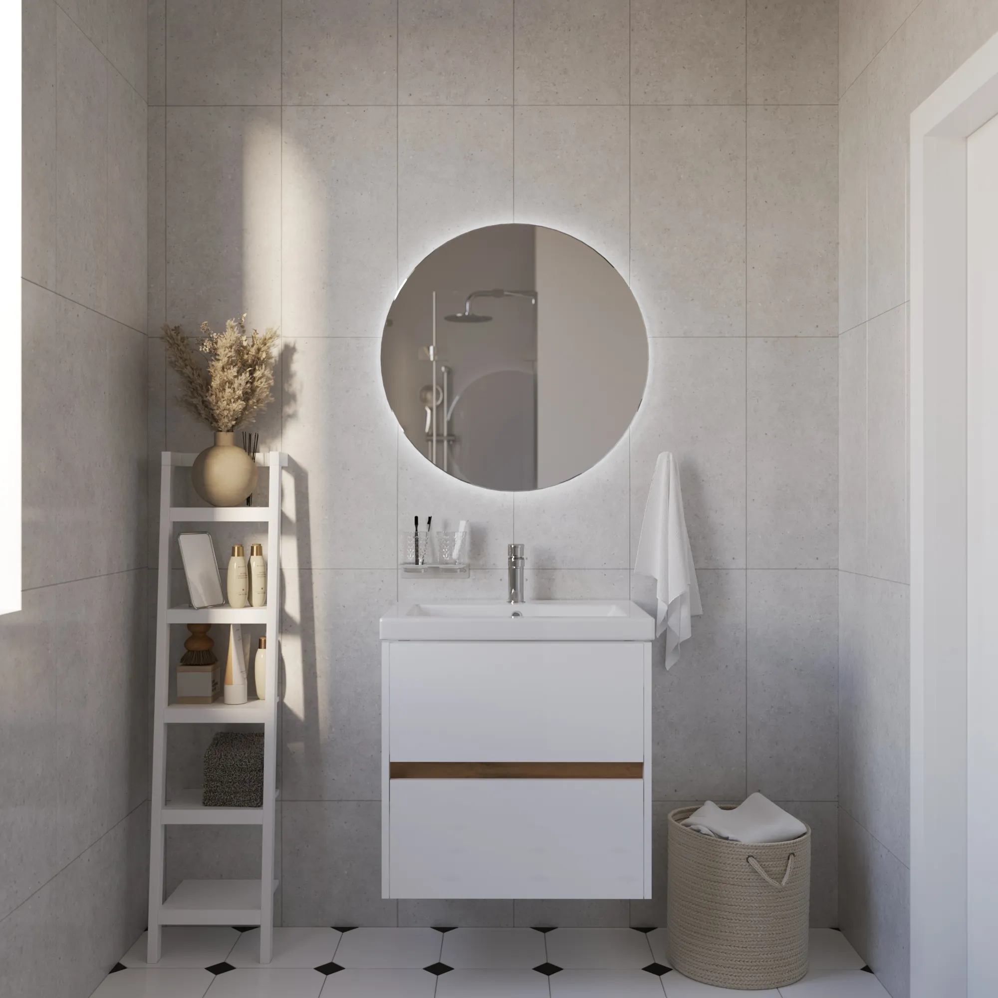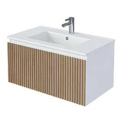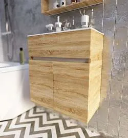 Подвесная тумба Veil под керамическую раковину* – минималистичная модель, созданная по актуальным тенденциям мебели для ванной. Благодаря универсальности, она подходит как для классических, так и для современных интерьеров. Перегородка в тон теплому дереву придает интерьеру уют и естественность, а белый матовый фасад и корпус добавляют легкости в пространство.Характеристики: