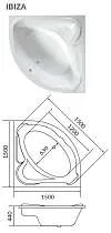 Угловая акриловая ванна размером 150х150 см. Эта ванна идеальна для комфортных расслабляющих водных процедур, которые можно принимать вдвоем. Слив, расположенный посередине, позволяет с удобством размещаться в любой части ванны.Характеристики: